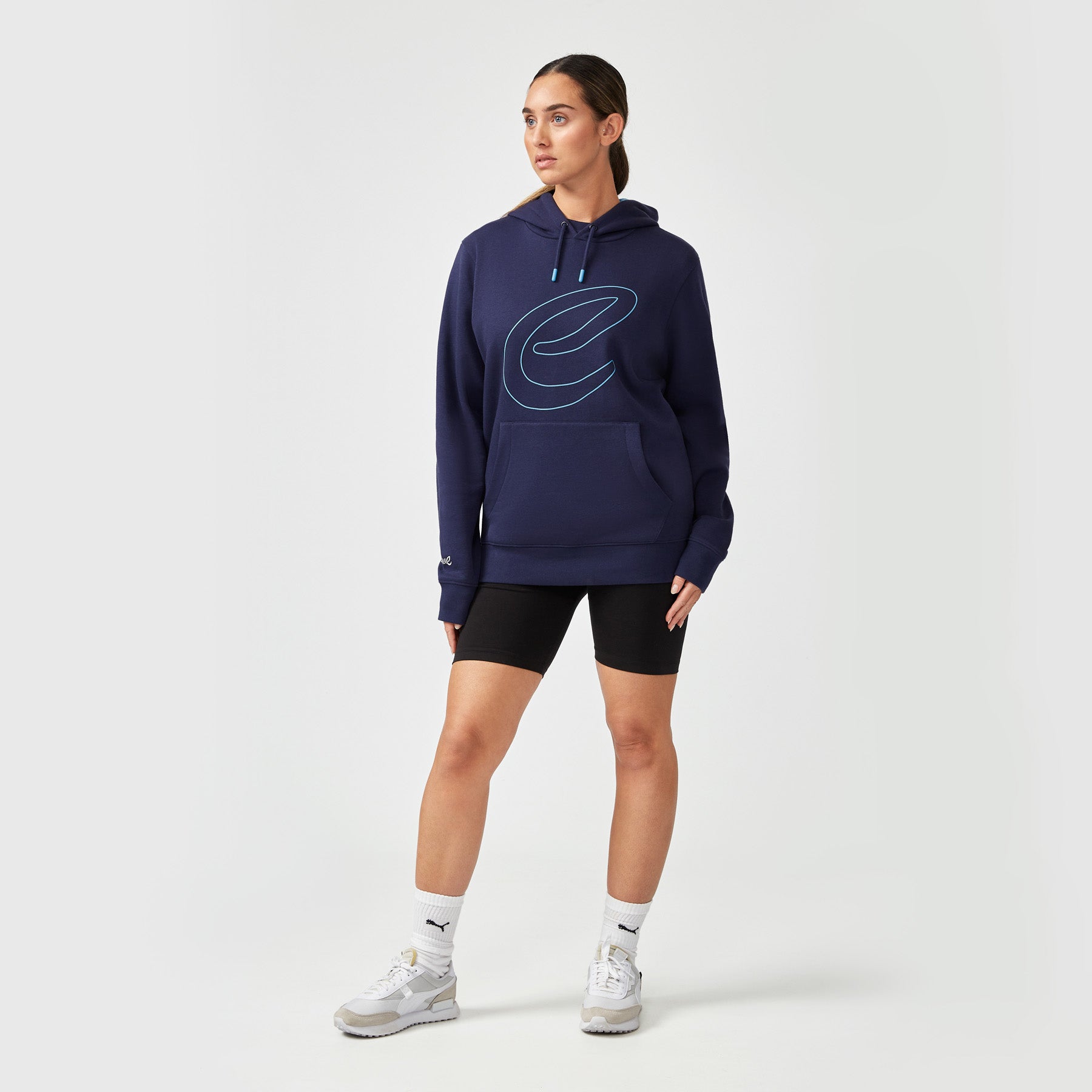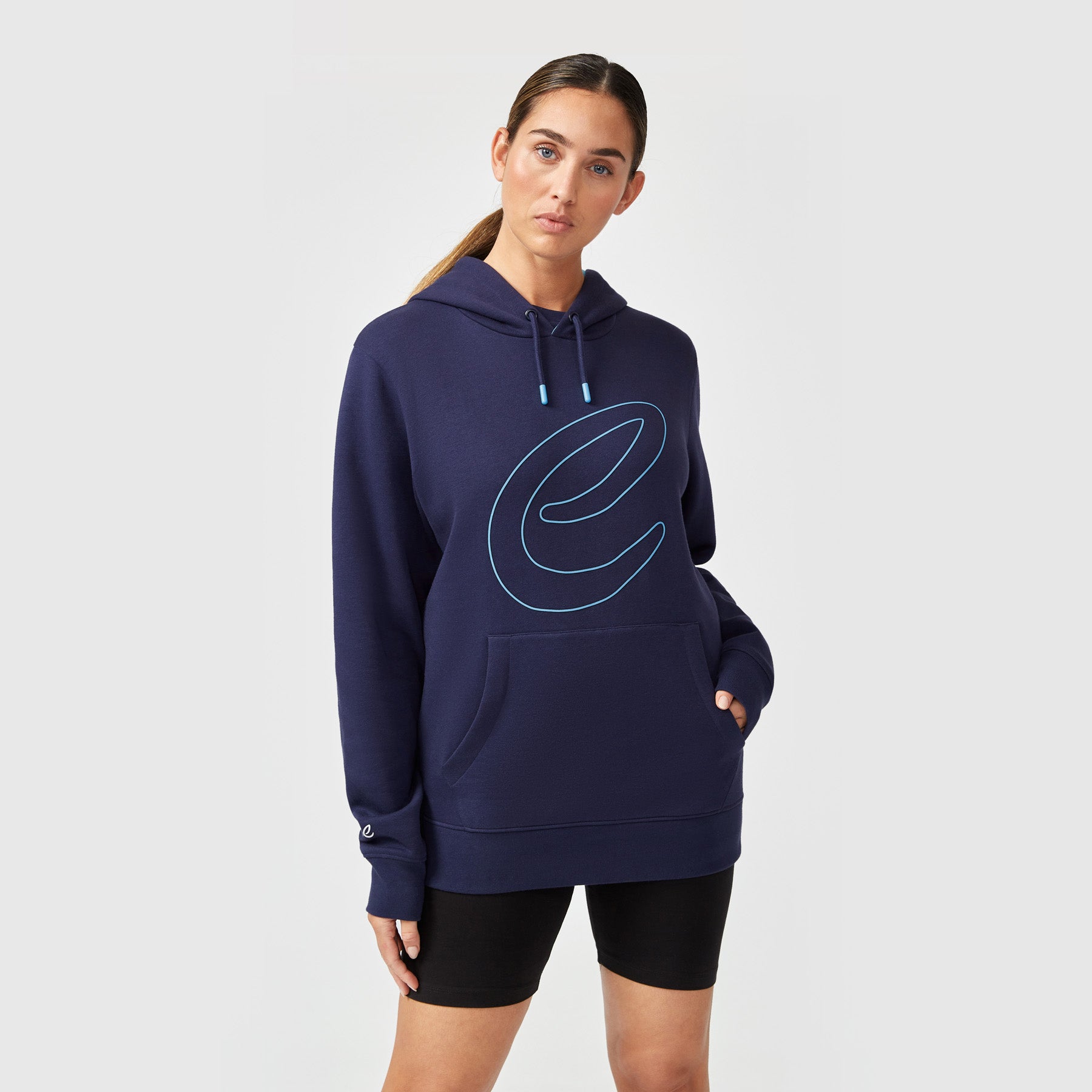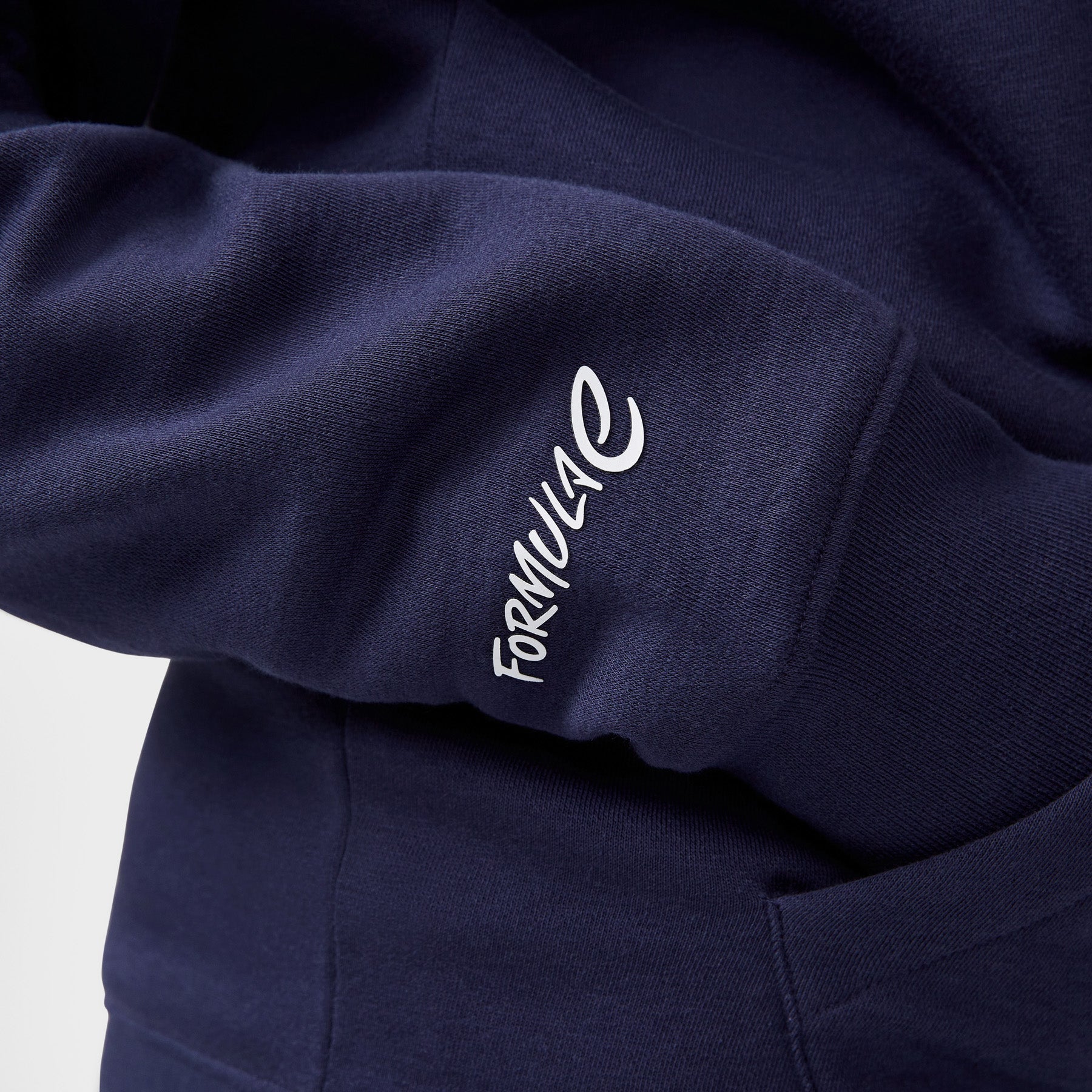 Stay warm and show your support for electric racing with the Formula E Tonal Logo Hoodie. Made from a sustainable blend of 80% organic cotton and 20% recycled polyester, it features an outlined Formula E logo on the chest, a cozy kangaroo pocket, and a drawcord-adjustable hood lined with contrast jersey. Ribbed cuffs and hem provide a snug fit, making it perfect for everyday comfort and style.